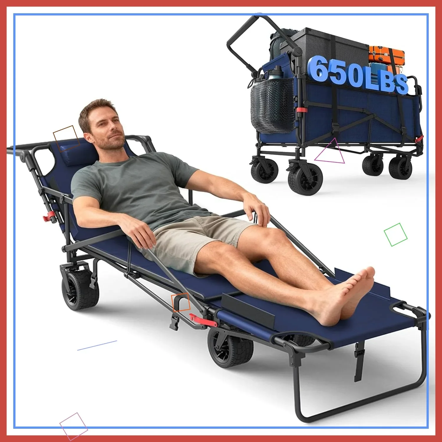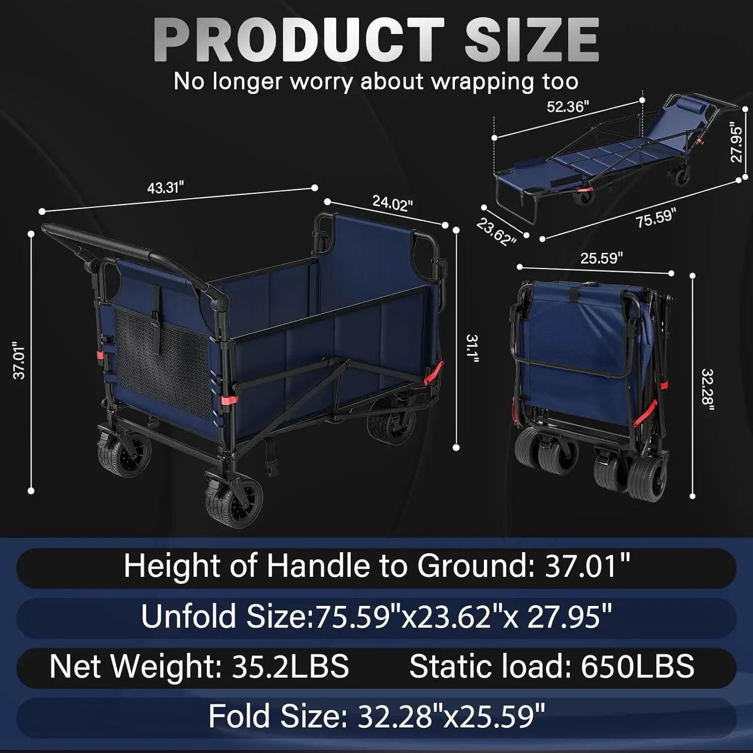 With an impressive 650 lb capacity and rugged all-terrain wheels, it rolls smoothly over grass, gravel, and more. The collapsible 2-in-1 design makes it easy to store when not in use, while built-in brakes keep it stable when parked.
